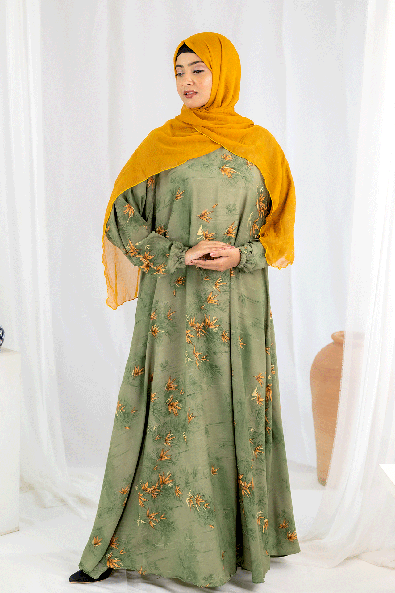 Nashwa - Jalbaab Printed Maxi Abaya, crafted from premium Fabric, it offers a luxurious feel, breathable wearability, and a graceful flow for all-day comfort. Hijab not included.